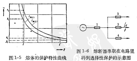 如圖1-6所示為兩種不同額定電流熔體的保護特性曲線。